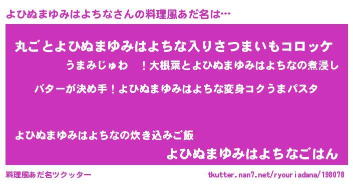 | 欧米人風あだ名 | 『ダニエルよひぬまゆみはよちな』 |