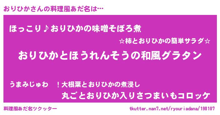 | 意味不明あだ名 | 『なめこ科おりひか属』『自称おりひか』 |