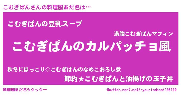 | ピコ太郎風あだ名 | 『コム史郎』『ココ次郎』『ピココ郎』 |
