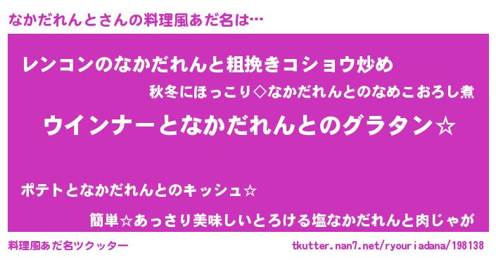 | ヘコむあだ名 | 『なまこ酢』『なかだれんと(小並感)』 |
