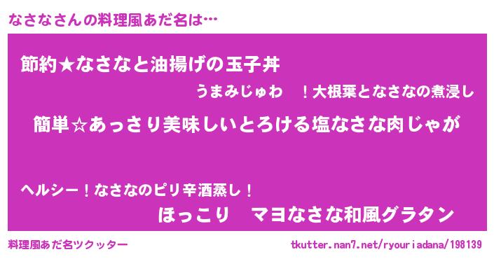 | ヘコむあだ名 | 『なさな(遠い目)』『なさふぇ~』 |