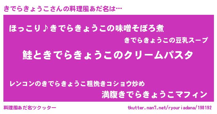 | ヘコむあだ名 | 『きでもー』『きでらきょうこ(遠い目)』 |