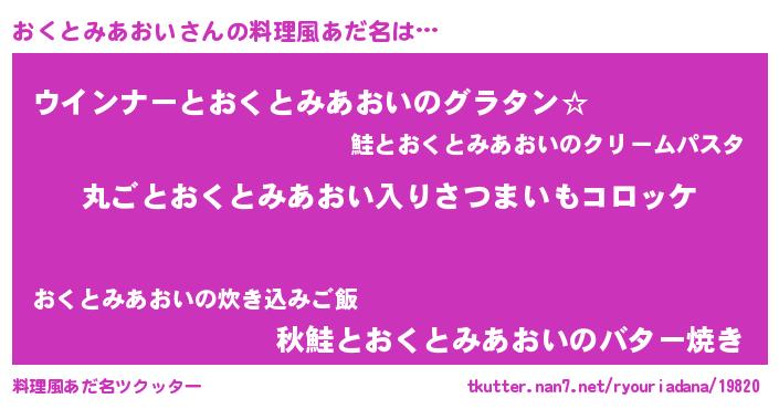 | 意味不明あだ名 | 『住所不定無職おくとみあおい(68歳)』 |