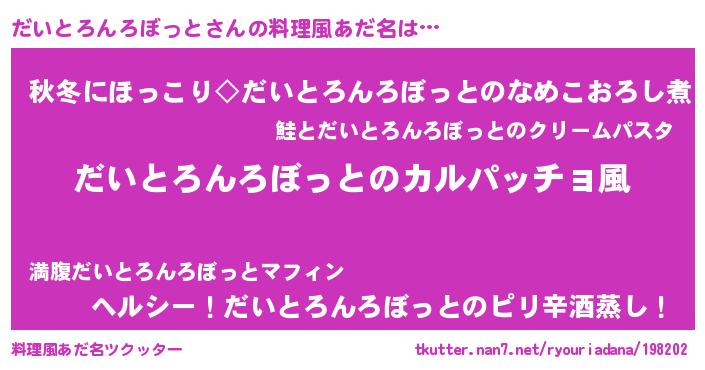 | ヘコむあだ名 | 『だいとろんろぼっと(遠い目)』『レバニラ』 |