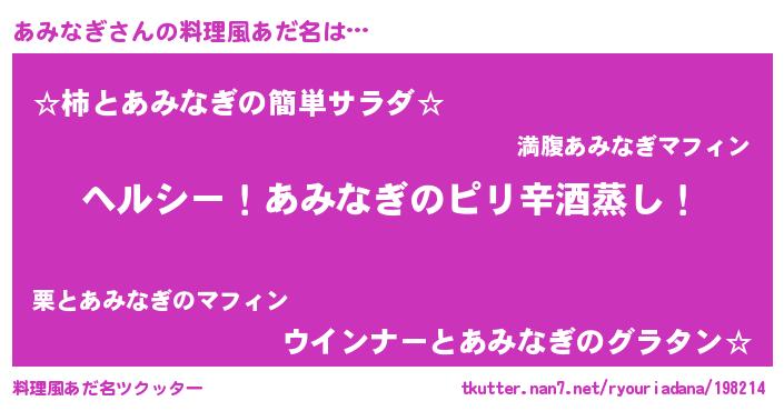 | 男性向けラノベタイトル風あだ名 | 『Re:あみなぎから始める異世界生活』 |