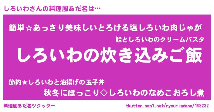 | ヒーロー風カッコイイあだ名 | 『ネオシロイワ』『天空の使者しろいわ』 |