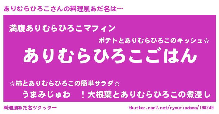 | 可愛いあだ名 | 『ありぷりん』『ありむらひろこママ』 |