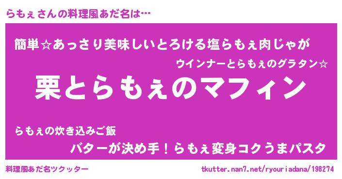 | 意味不明あだ名 | 『永久保存らもぇ』『らもぇフォーエバー』 |