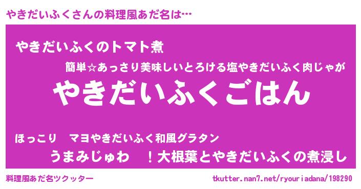 | 欧米人風あだ名 | 『トリンドルやきだいふく』 |
