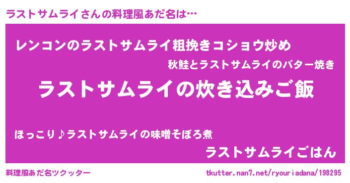 | 恥ずかしいあだ名 | 『ラストサムライデラックス』『ラスちん』 |