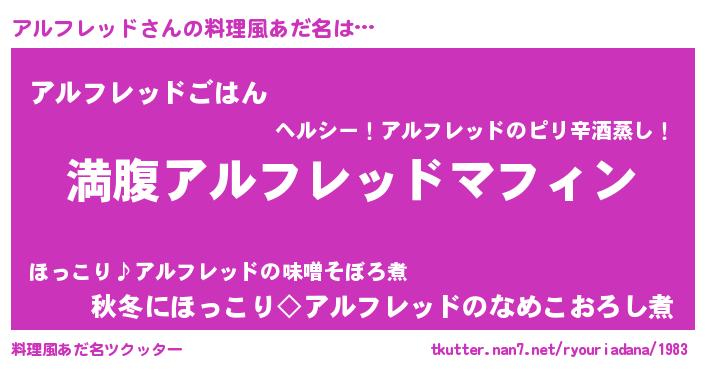 | 意味不明あだ名 | 『永久保存アルフレッド』 |