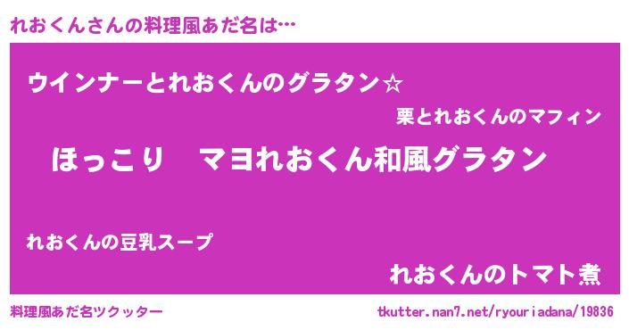 | ヘコむあだ名 | 『酢こんぶ』『れおを』『れおにゅー』 |