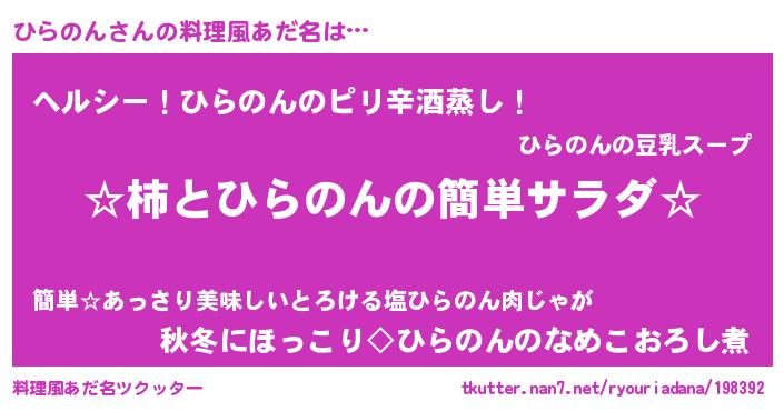 | ヒーロー風カッコイイあだ名 | 『超時空戦士ヒラノン』『幻影騎士ヒラ』 |