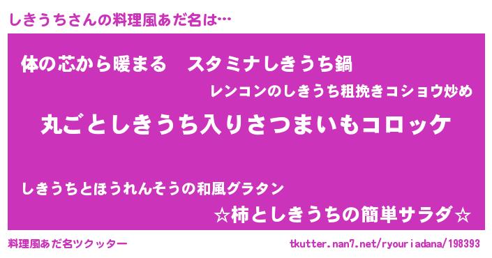 | ヘコむあだ名 | 『なまこ酢』『しき太郎』『しきもー』 |