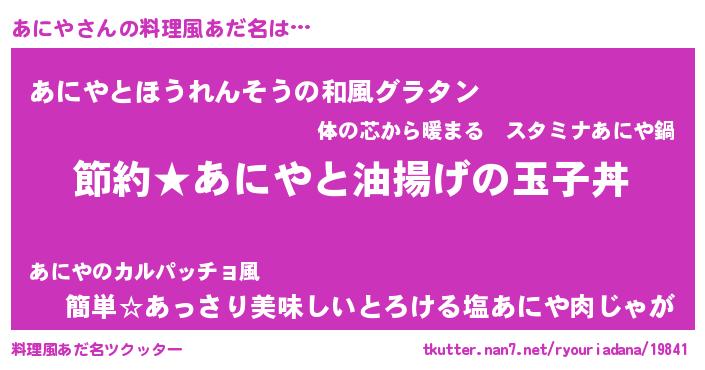 | 2回繰り返すあだ名 | 『あにあに』『わいわい』『ああにに』 |