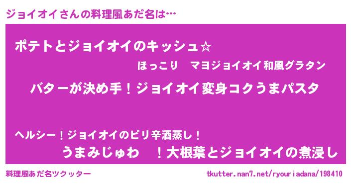 | ヒーロー風カッコイイあだ名 | 『愛の使者ジョイオイ』『幻影騎士ジョ』 |