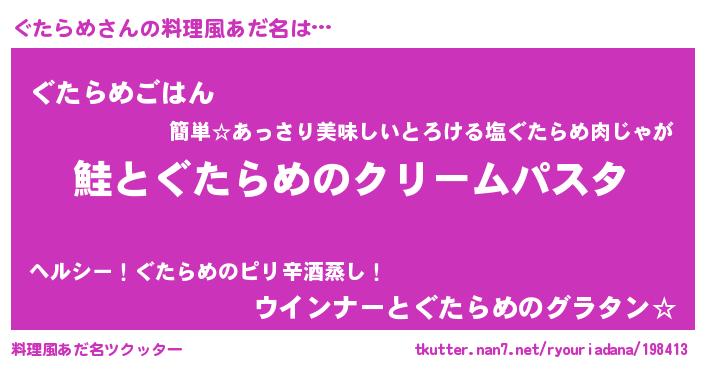 | ヒーロー風カッコイイあだ名 | 『慈愛の使者ぐたらめ』『ネオグタラメ』 |