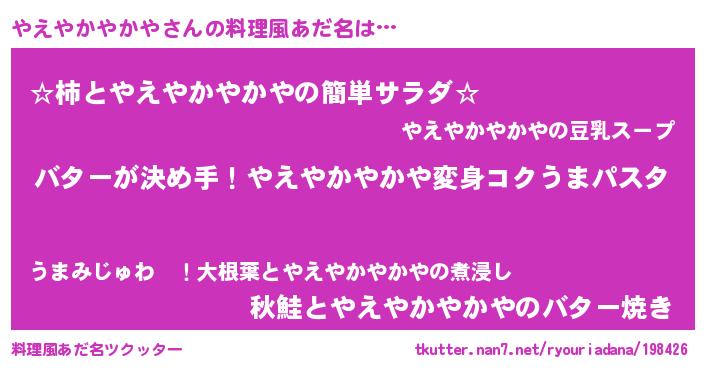 | ヘコむあだ名 | 『やえやかやかや(笑)』『やえ太郎』 |