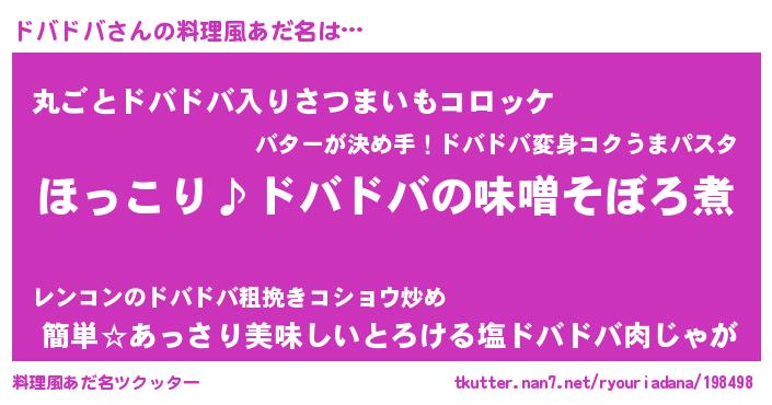 | 男性向けラノベタイトル風あだ名 | 『ドバドバの憂鬱』『魔弾の王とドバドバ』 |
