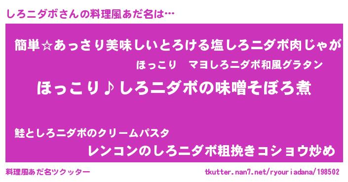 | 女子向けラノベタイトル風あだ名 | 『(仮)しろニダボのやんごとなき事情』 |