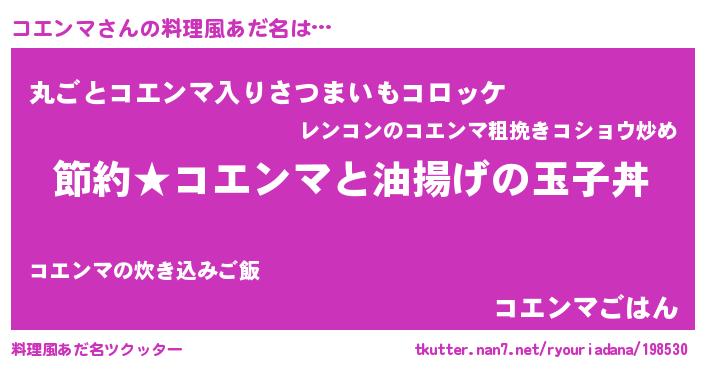 | 意味不明あだ名 | 『ペロリンコエンマ』『自称コエンマ』 |