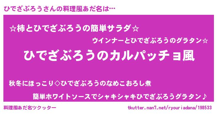 | 意味不明あだ名 | 『住所不定無職ひでざぶろう(6歳)』 |