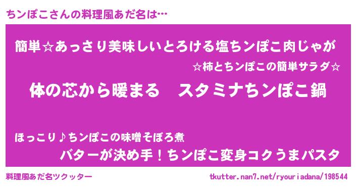 | 可愛いあだ名 | 『ちンちー』『ちンぽこママ』 |