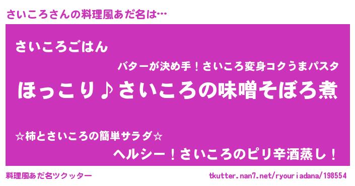| 男性向けラノベタイトル風あだ名 | 『さいころの憂鬱』『サイコロスレイヤー』 |