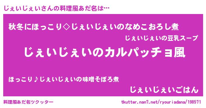 | 意味不明あだ名 | 『住所不定無職じぇいじぇい(85歳)』 |