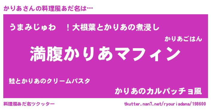 | 意味不明あだ名 | 『永久保存かりあ』『かりあフォーエバー』 |
