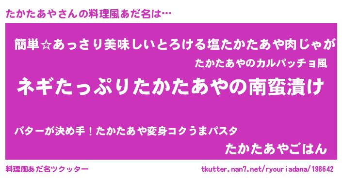 | ヒーロー風カッコイイあだ名 | 『スーパータカタアヤ』『ネオタカタアヤ』 |