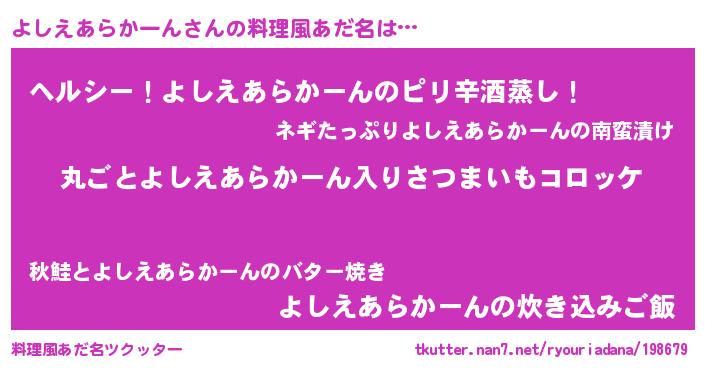| ヘコむあだ名 | 『よしにゅー』『よしえあらかーん(小並感)』 |