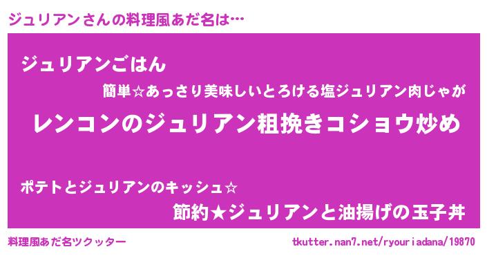 | 意味不明あだ名 | 『自称ジュリアン』『ペロリンジュリアン』 |