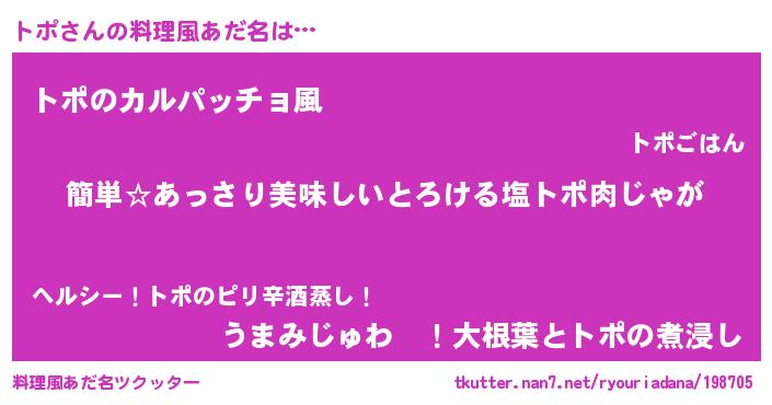 | 意味不明あだ名 | 『永久保存トポ』『住所不定無職トポ(7歳)』 |