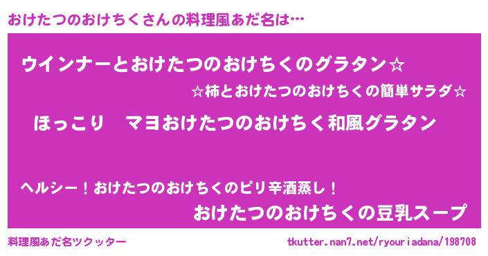 | 意味不明あだ名 | 『住所不定無職おけたつのおけちく(93歳)』 |