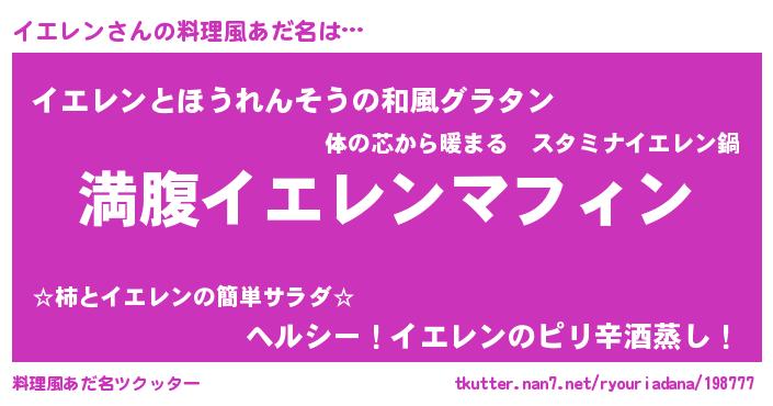 | 伝説のあだ名 | 『聞きしに勝る勇者イエレン』 |