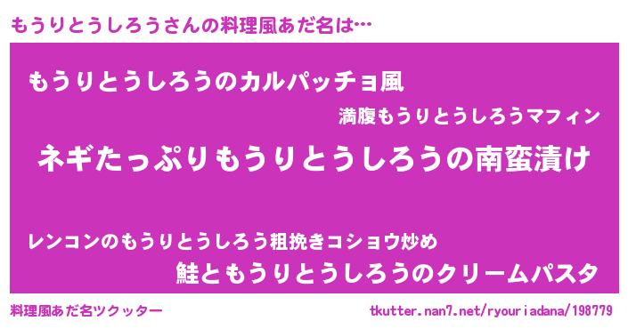 | ヒーロー風カッコイイあだ名 | 『スーパーモウリトウシロウ』 |
