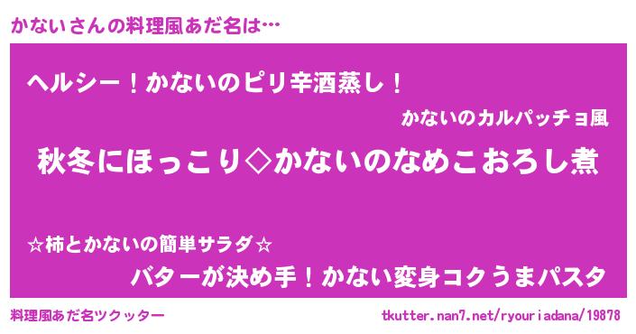 | ヘコむあだ名 | 『かなもー』『かなお』『なまこ酢』 |