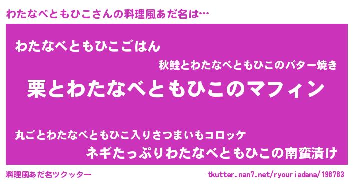 | ヘコむあだ名 | 『わたにゅー』『わたなべともひこ(苦笑)』 |