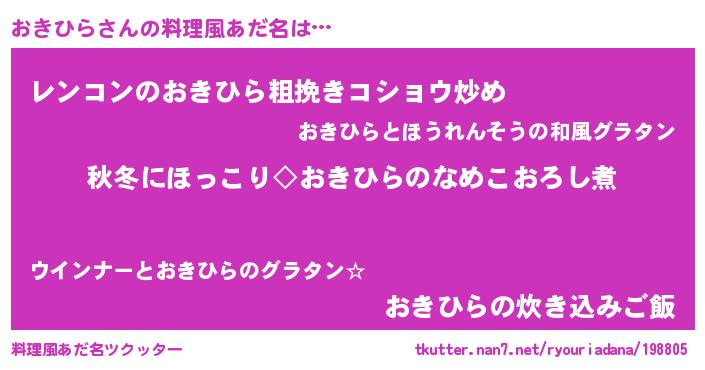 | 意味不明あだ名 | 『自称おきひら』『エリンギ科おきひら属』 |