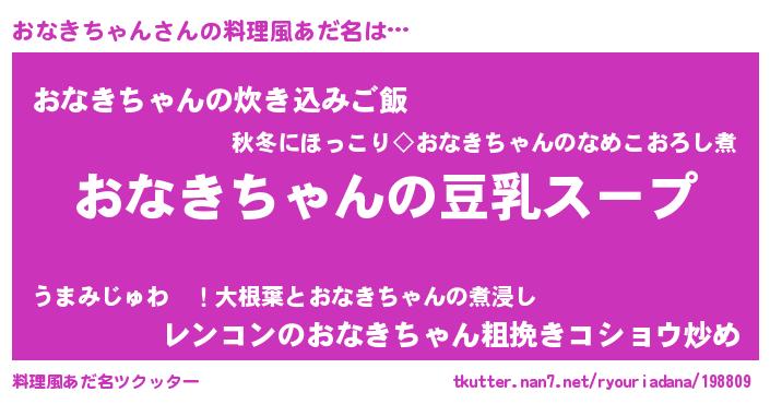 | 女子向けラノベタイトル風あだ名 | 『おなきちゃんは平凡を望む』 |