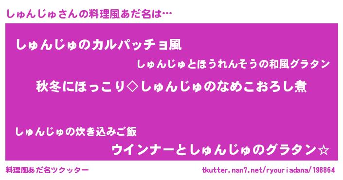 | 男性向けラノベタイトル風あだ名 | 『しゅんじゅに滅ぼされるだけの簡単なお仕事です』 |