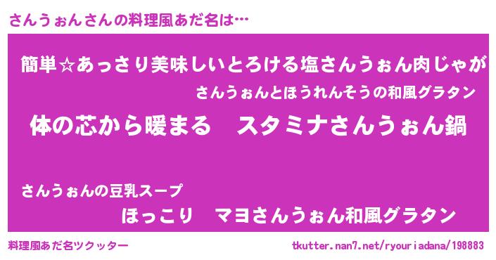 | 意味不明あだ名 | 『さんうぉんフォーエバー』 |