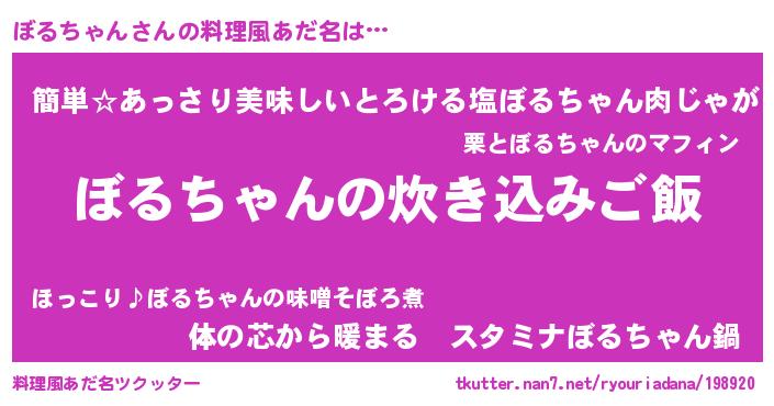 | ヘコむあだ名 | 『ぼるちゃん(爆)』『酢こんぶ』 |