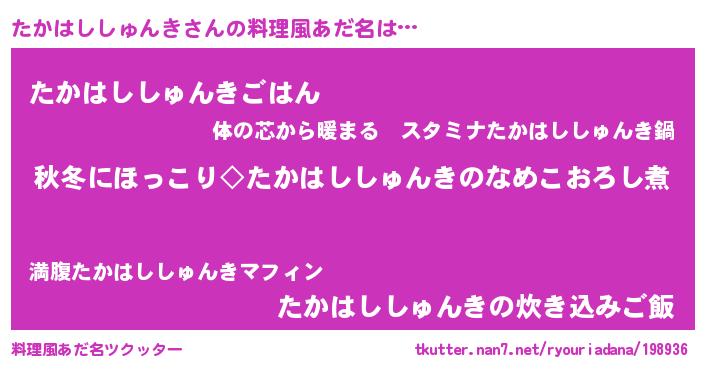 | 男性向けラノベタイトル風あだ名 | 『たかはししゅんきに滅ぼされるだけの簡単なお仕事です』 |