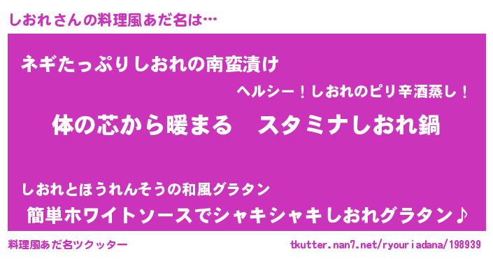 | 女子向けラノベタイトル風あだ名 | 『しおれの雑貨屋さん』 |