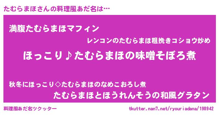| ヘコむあだ名 | 『たむにゅー』『たむらまほ(小並感)』 |