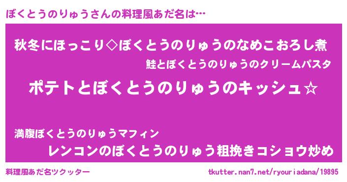 | 胡散臭い通販商品みたいなあだ名 | 『伝統あるサプリメント…その名も「ぼくとうのりゅう」』 |