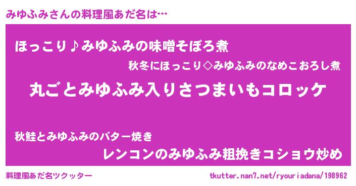 男性向けラノベタイトル風あだ名 | 『魔弾の王とみゆふみ』『みゆふみの憂鬱』 |