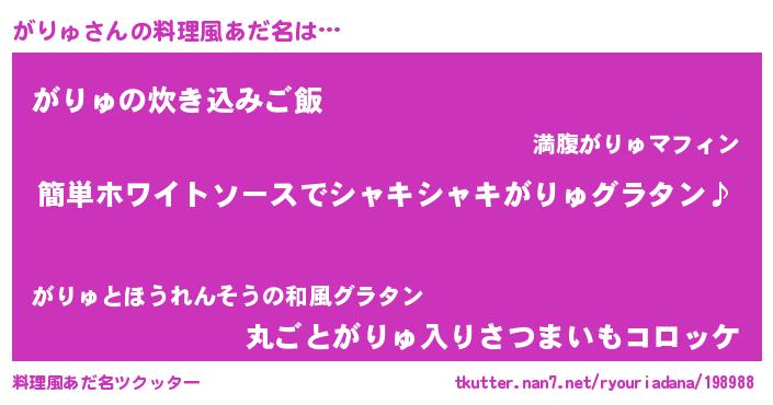 | 男性向けラノベタイトル風あだ名 | 『がりゅの嫁は女の子じゃないと思った?』 |
